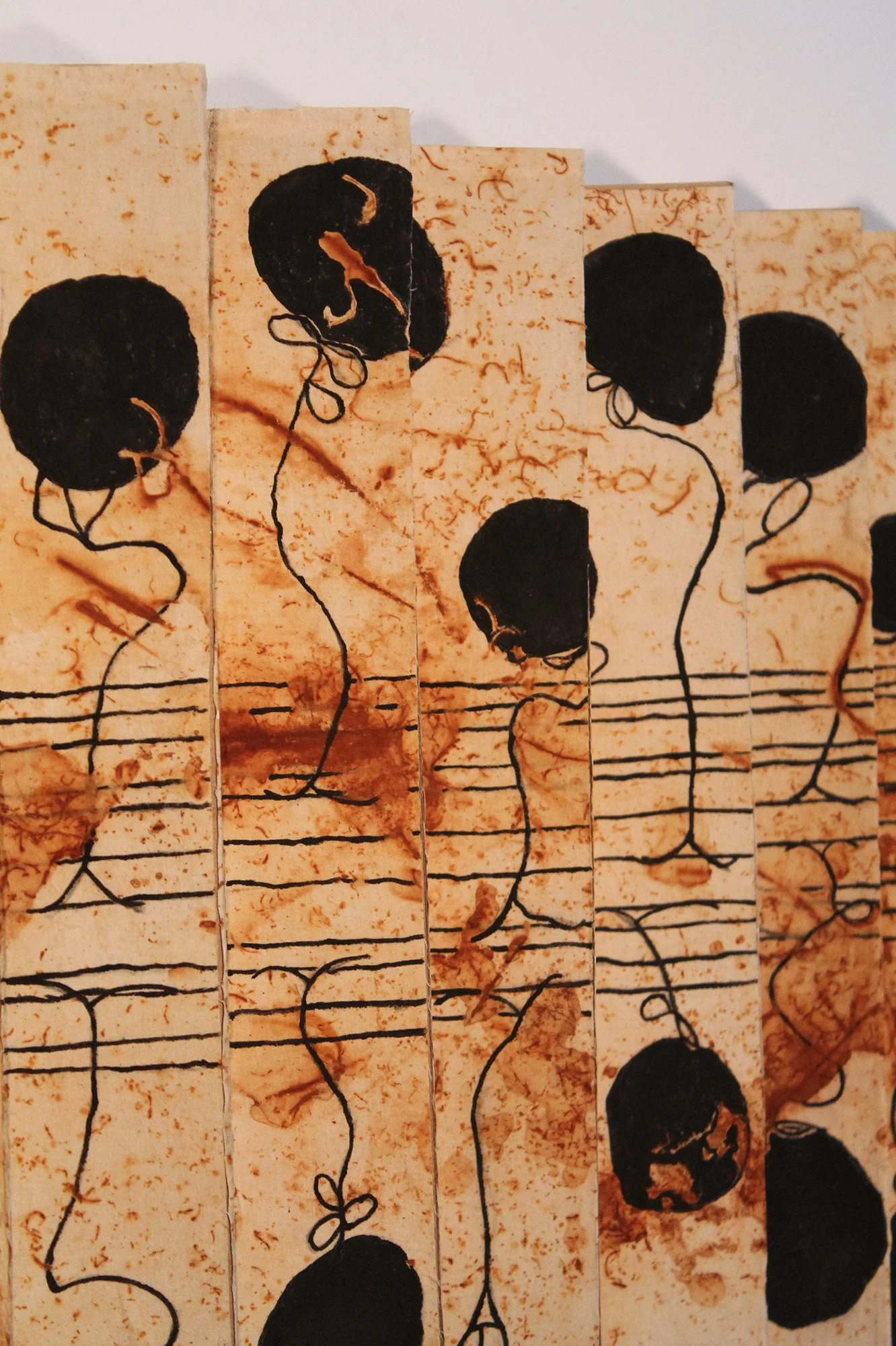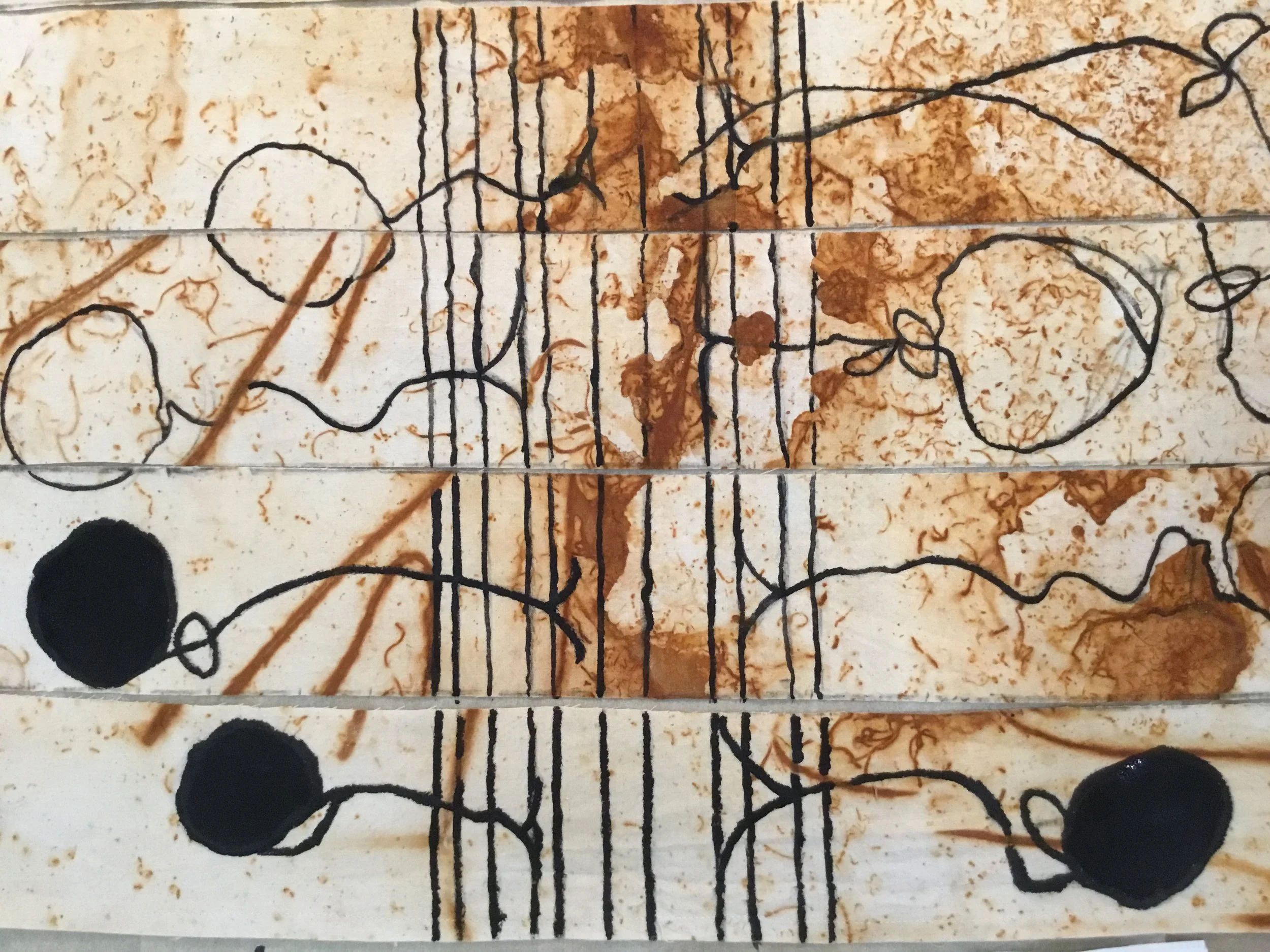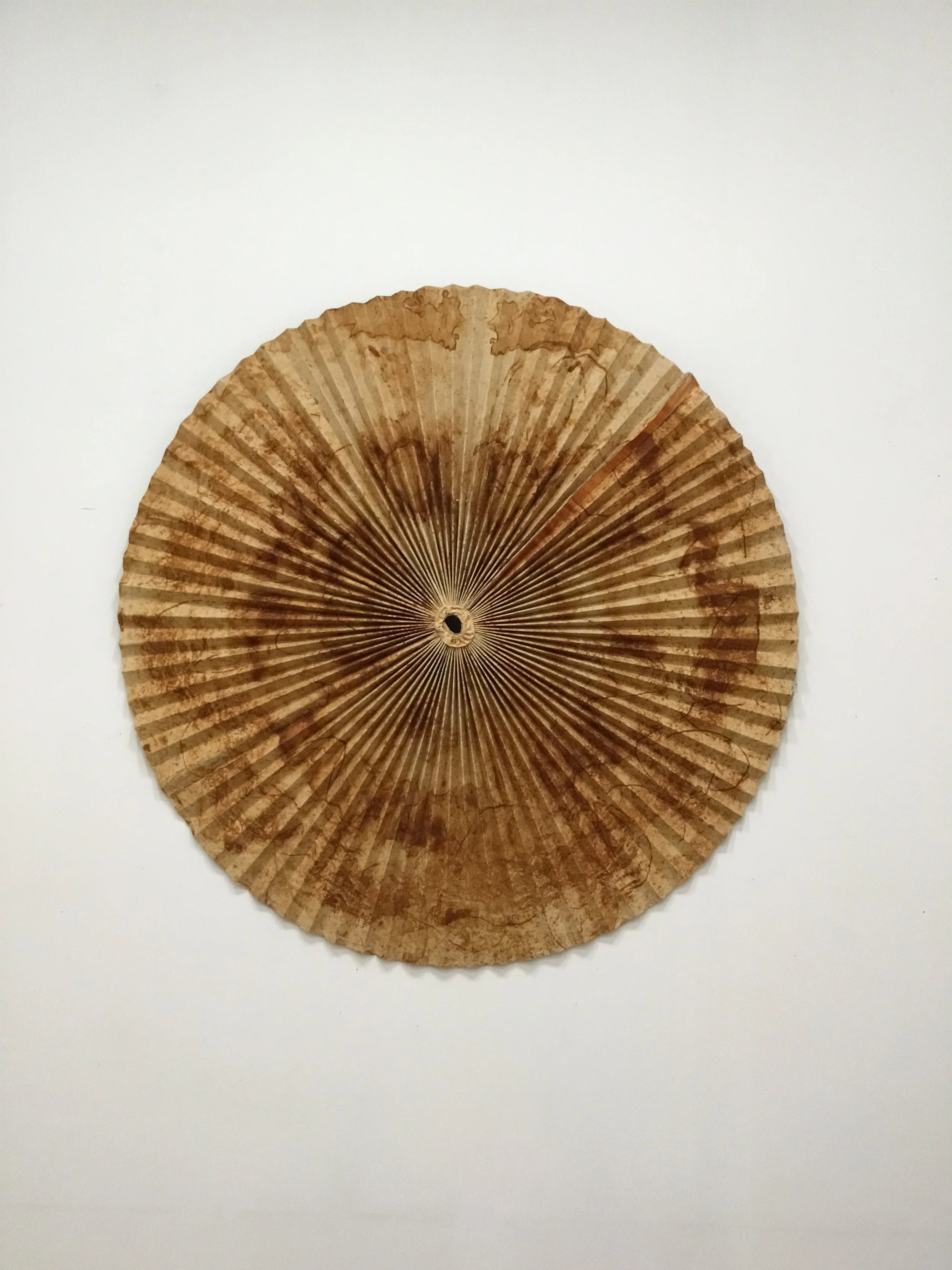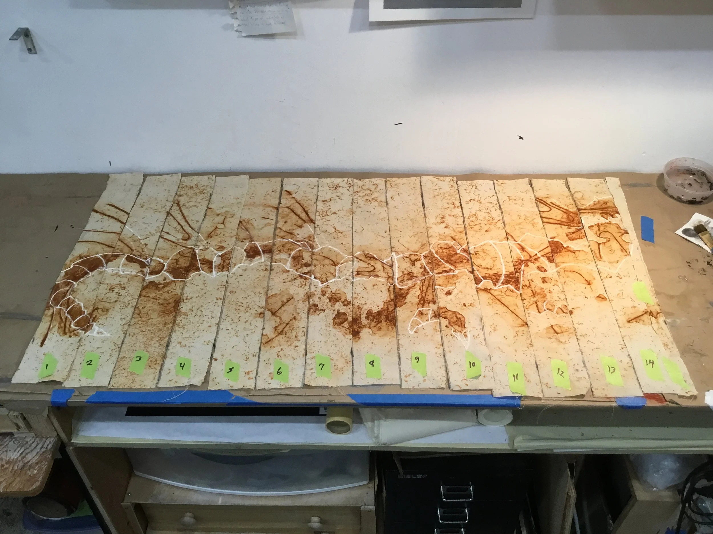 20”-12” x 2” Rust print on muslin, turmeric, plaster, ram board
